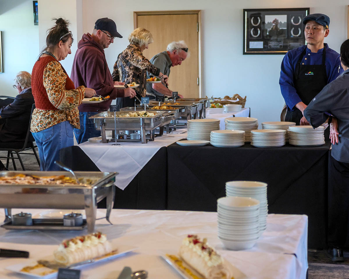 Balmerino Room & Restaurant (Ground Floor): Buffet lunch 12:30 – 3:00 pm, $45pp (member discount applies). Overlooks the birdcage with tote facilities and a bar—where great food meets a vibrant racing atmosphere